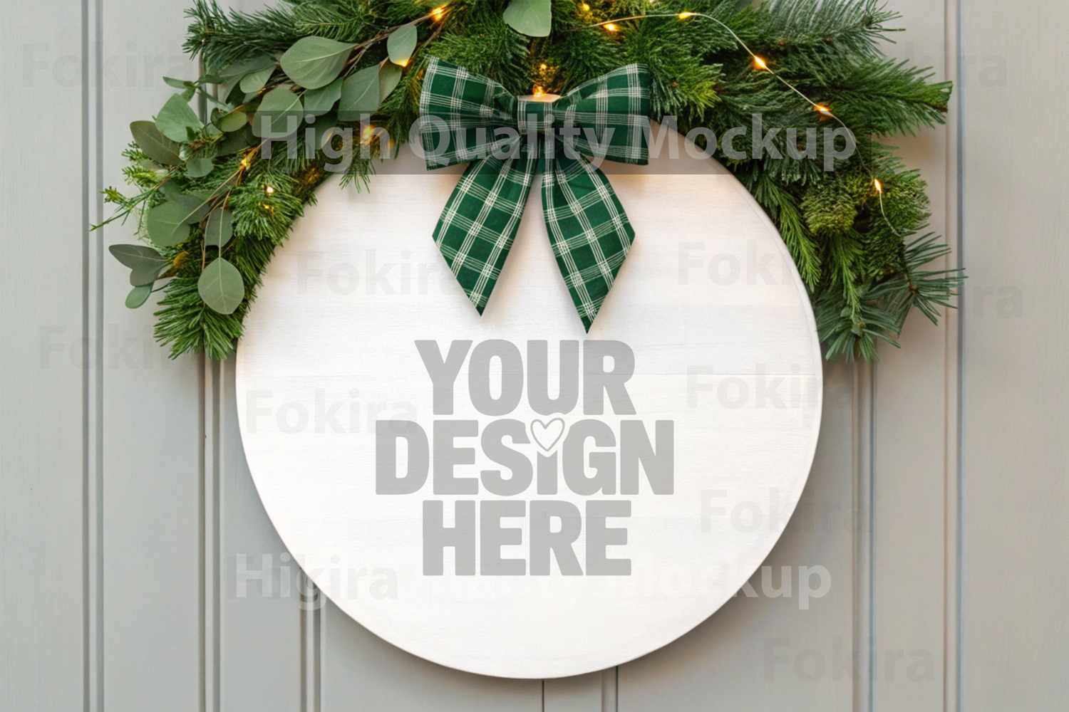 Christmas Round Wood Sign Mockup - Door Wood Sign example image 1