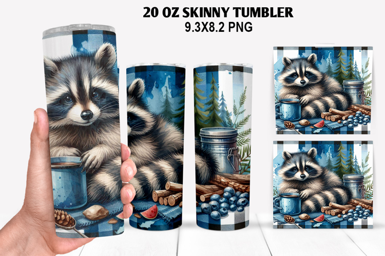 Raccoon Skinny Tumbler 20oz Wrap Design, Animal Tumbler Wrap example image 1