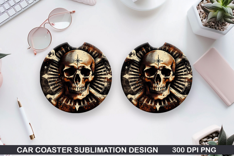 Skull Car Coaster Sublimation |Halloween Coaster PNG