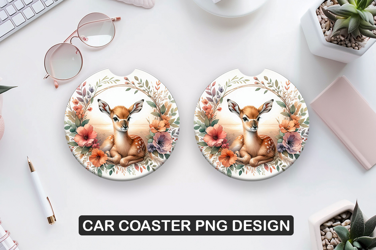 Similar Design Products to Floral Deer Car Coaster Sublimation| Animal Coaster PNG
