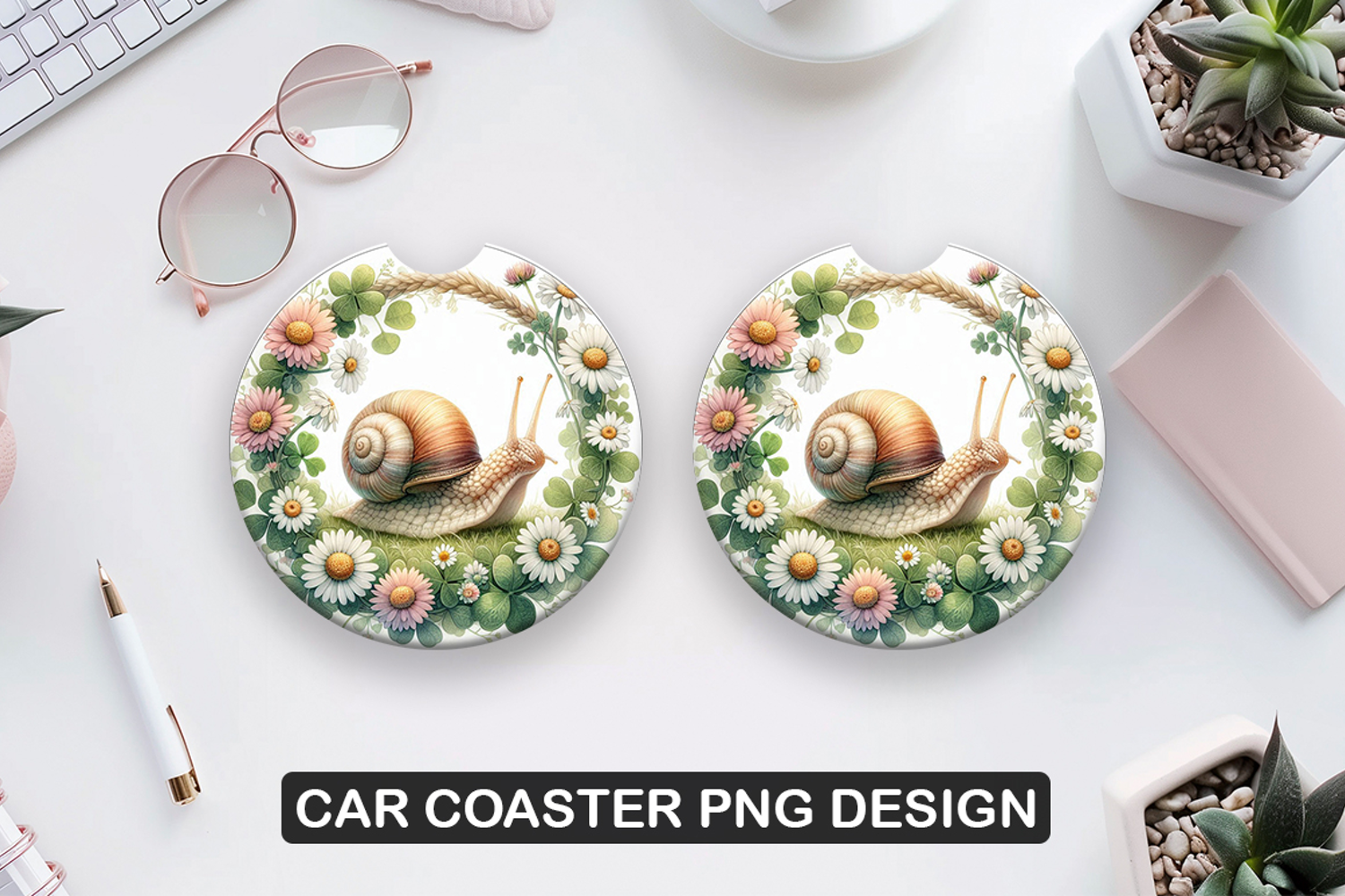 Similar Design Products to Flower Snail Car Coaster Sublimation| Animal Coaster PNG