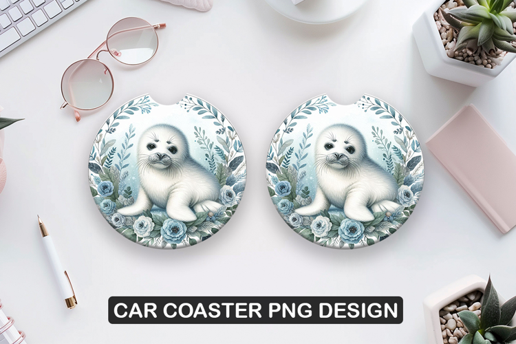 Seal Car Coaster Sublimation| Animal Coaster PNG