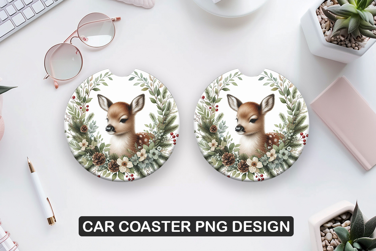 Deer Flower Car Coaster Sublimation| Animal Coaster PNG