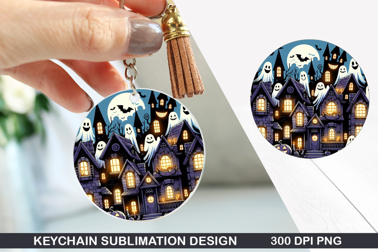 Halloween House Keychain Sublimation -Halloween Keychain PNG example image 1