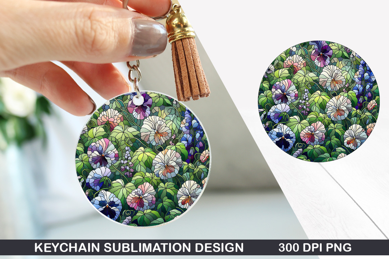Flower Keychain Sublimation - Spring Keychain PNG Design example image 1