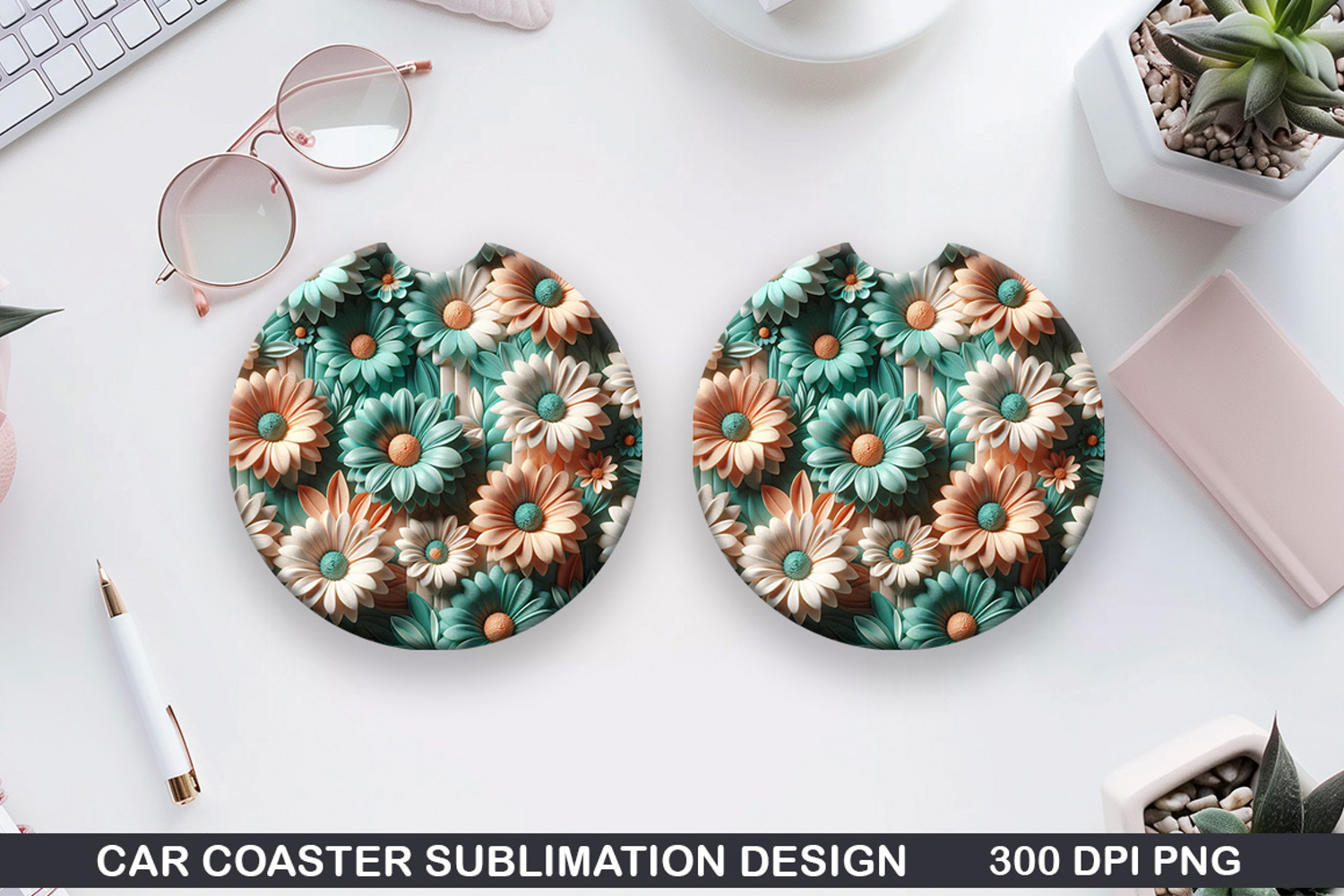 Summer Flowers Car Coaster Sublimation Design