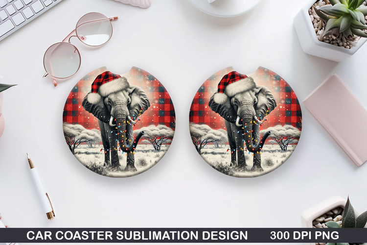 Elephant Car Coaster Sublimation| Christmas Coaster PNG example image 1