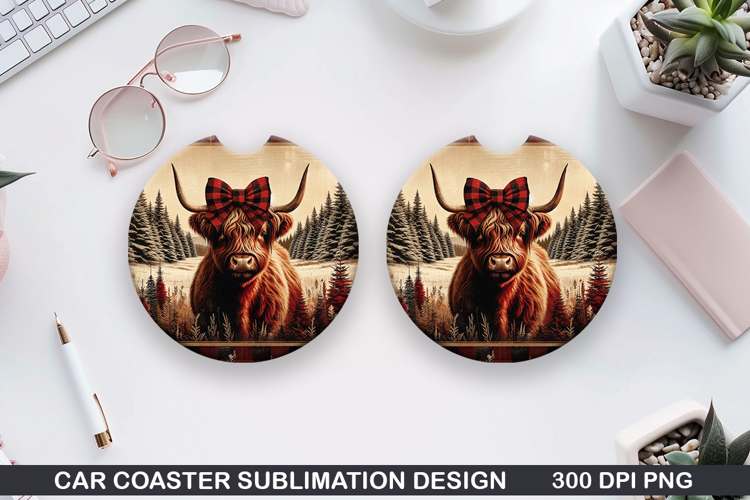 Similar Design Products to Highland cow Car Coaster Sublimation| Christmas Coaster PNG