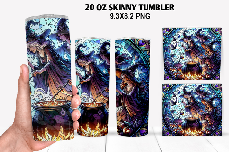 Witch Skinny Tumbler 20oz Wrap Design, Halloween Tumbler PNG example image 1