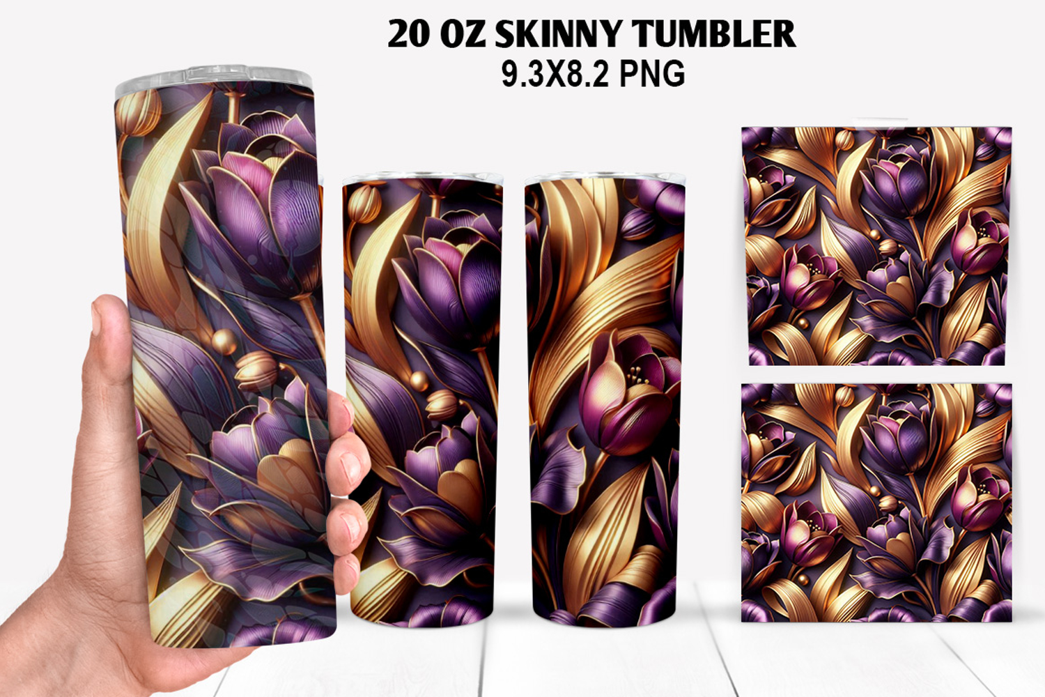 3D Flower Skinny Tumbler 20oz Wrap Design,Flowers Tumble PNG example image 1