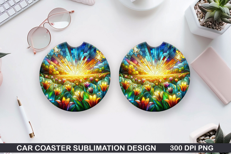 Flower Car coaster sublimation, Easter Coaster PNG Design example image 1