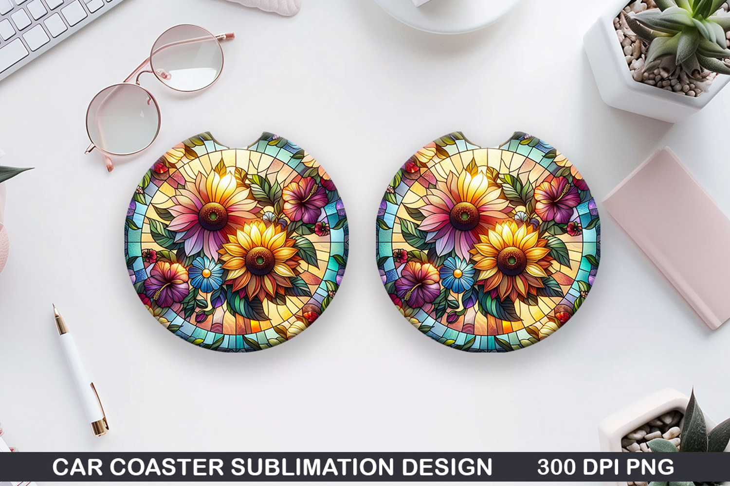 Summer Flower Car Coaster Sublimation PNG Design