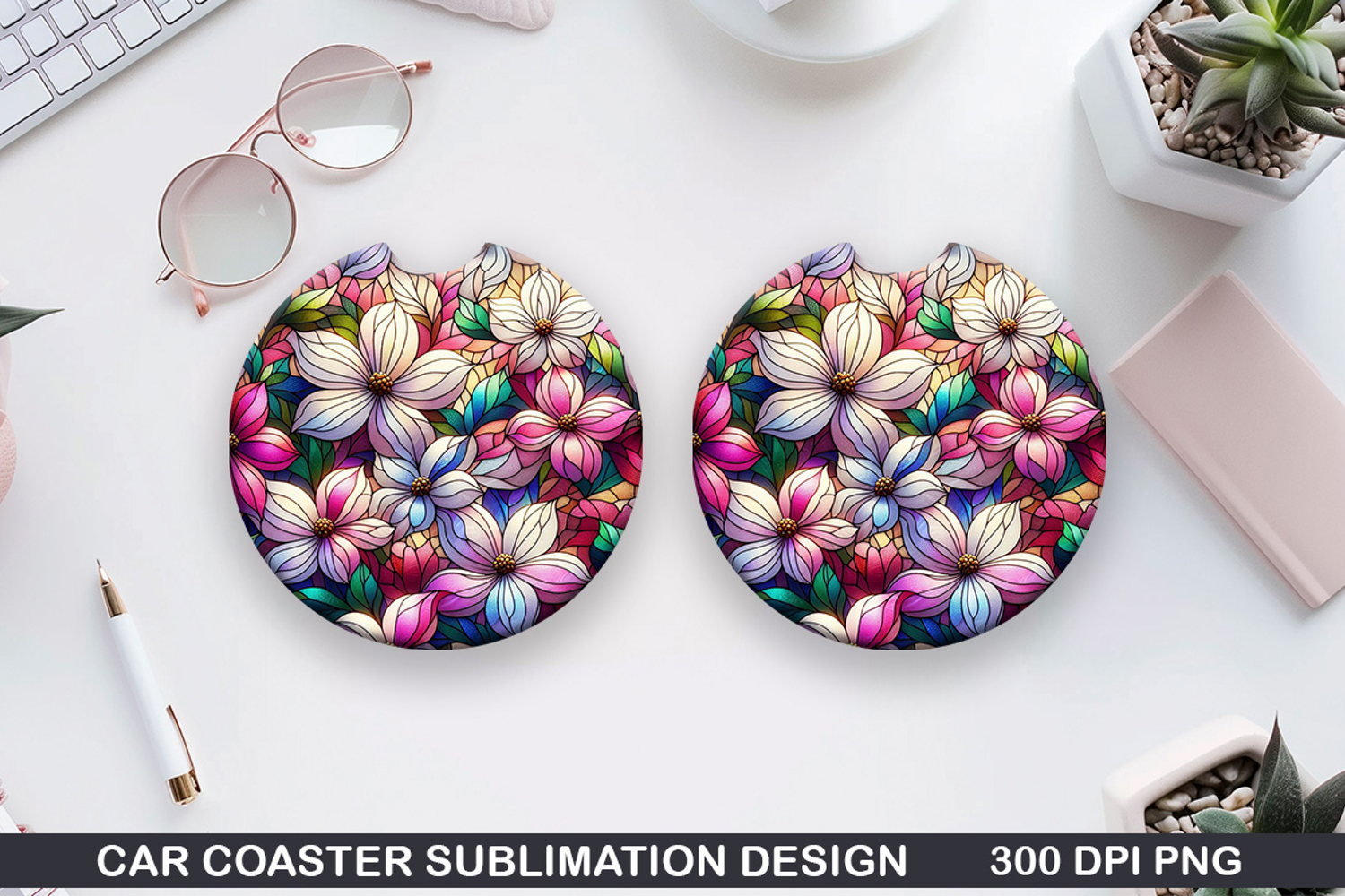 Flower Car coaster sublimation, Summer Coaster PNG Design