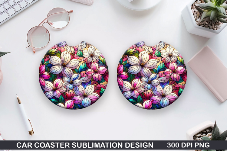 Similar Design Products to Flower Car coaster sublimation, Summer Coaster PNG Design