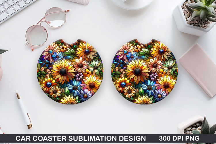 Summer Flower Car Coaster Sublimation PNG Design