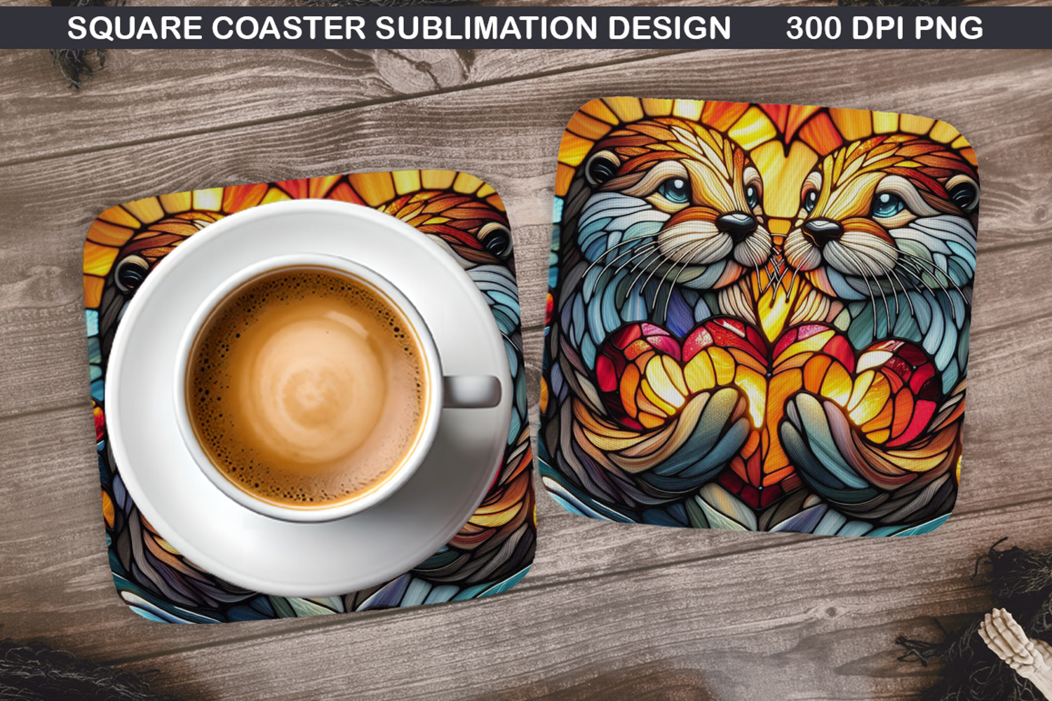 Cute Otter Coaster Sublimation, Valentine Coaster PNG Design example image 1