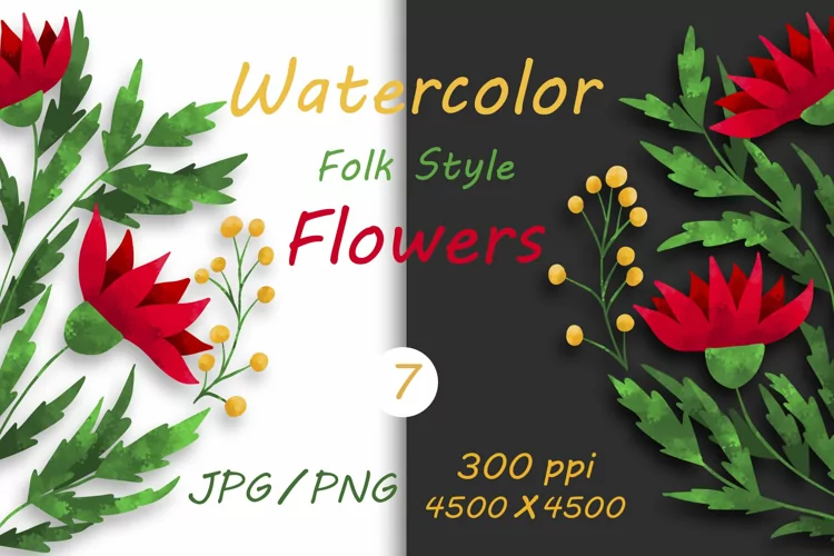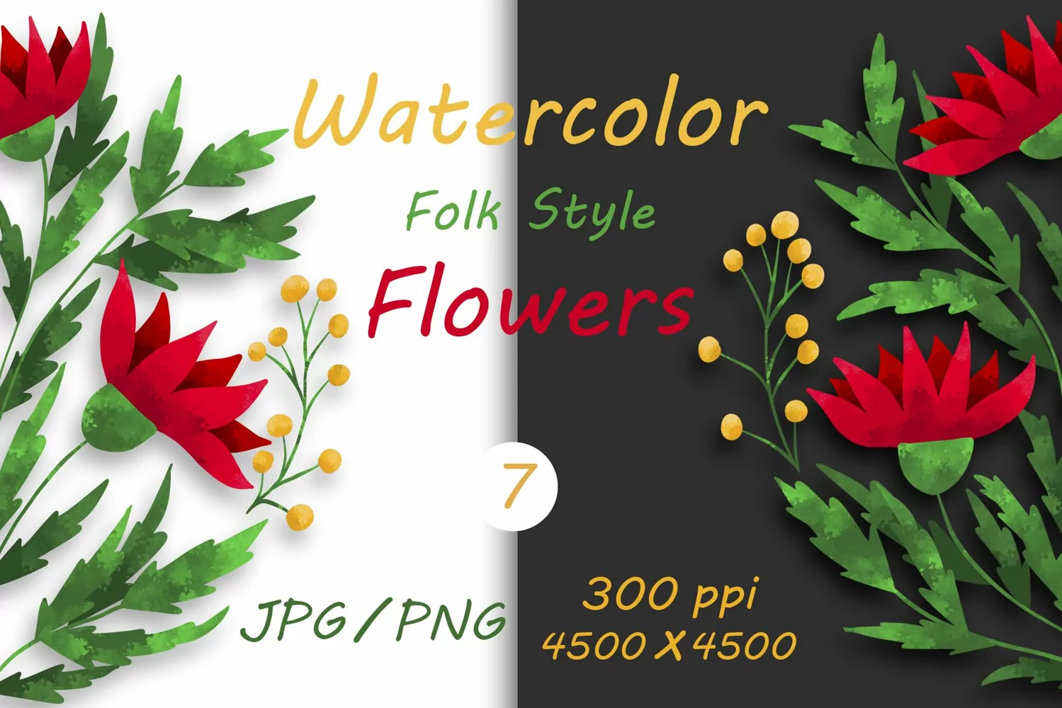 Similar Design Products to Flowers in folk style drawn with watercolor 7