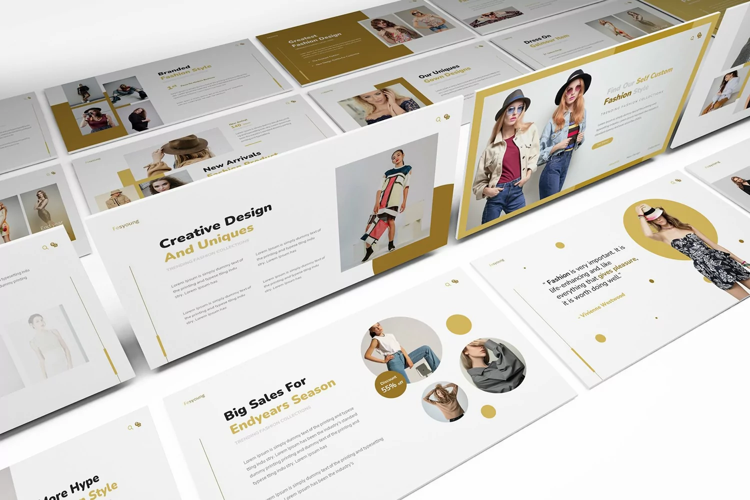 Fasyoung Powerpoint Template for fashion presentation template. With flat and minimalist design make your presentation stand out, with simple, clean, and minimalist design concept. for high quality brand presentation asset.
