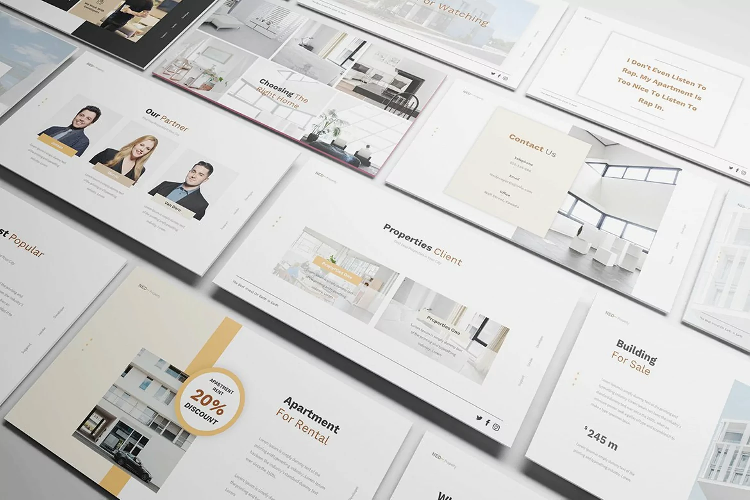 Apartment Property Keynote Template for Apartment agent, real estate and apartment rental Presentation template. Modern design make your presentation stand out, with simple, clean, and minimalist design concept. for high quality brand presentation asset.Features: