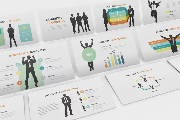 Silhouette Infographic Keynote Template is a multipurpose Silhouette infographic for your presentation template. with a simple design, clean element to help your marketing proposal. High-quality brand presentation asset. Simply Copy paste the slides you like to your presentation project.Features:
