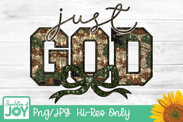 Just God png, glitter quote png, Christian Camouflage design example image 1