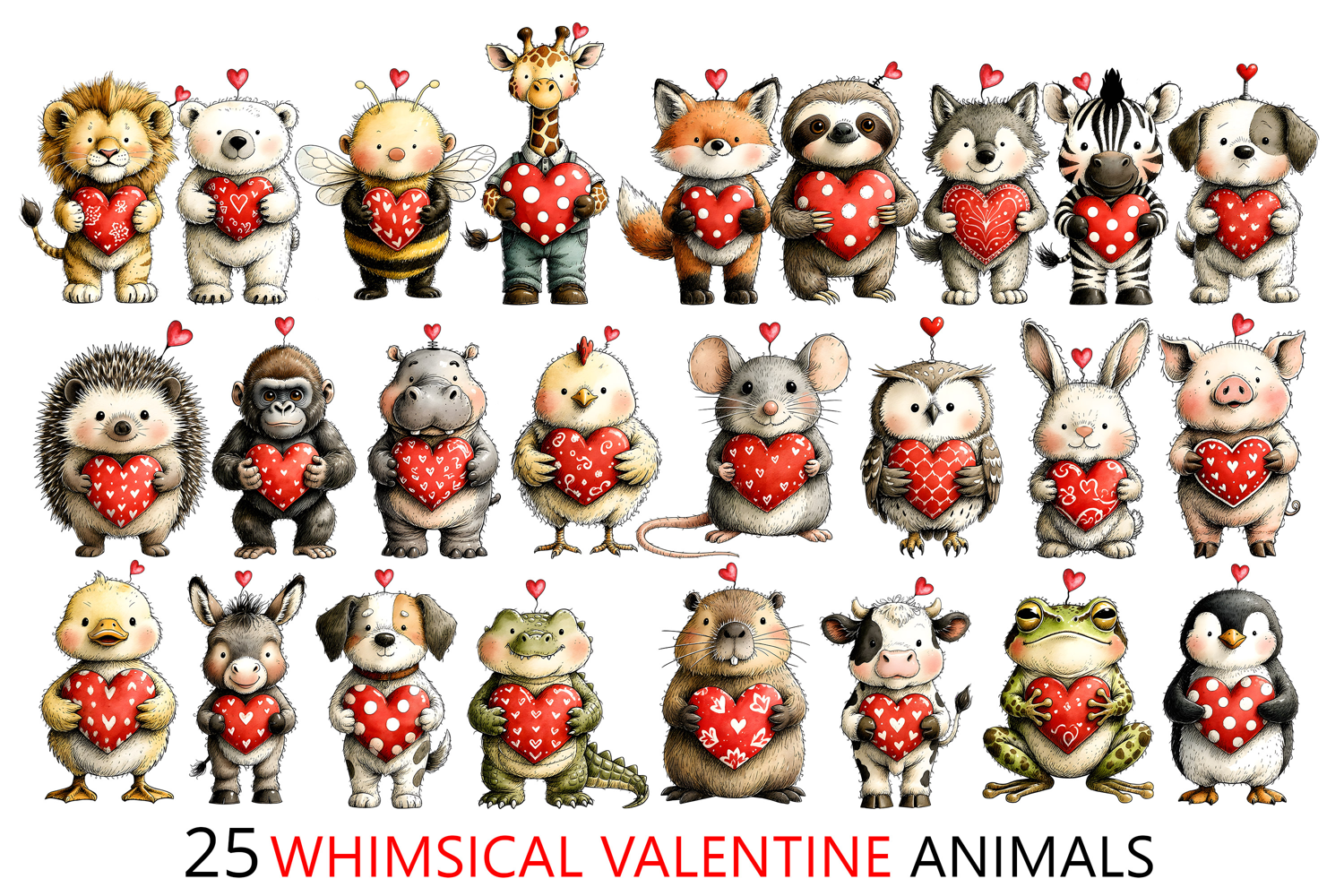 25 Whimsical Valentine Animals Clipart Bundle example image 1