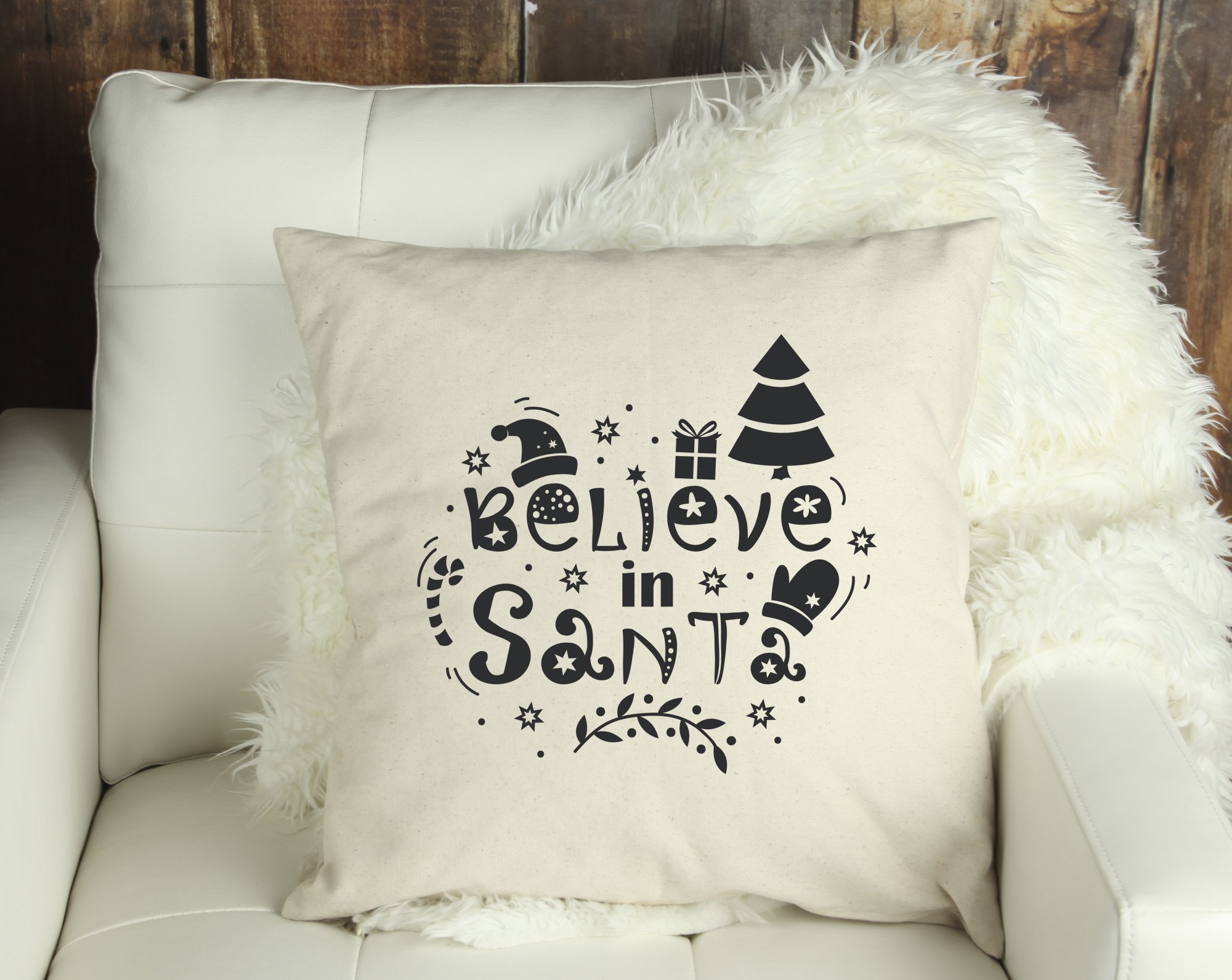 Canvas Pillow square pillow mockup on white leather chair with white fur blanket and rustic brown wood background