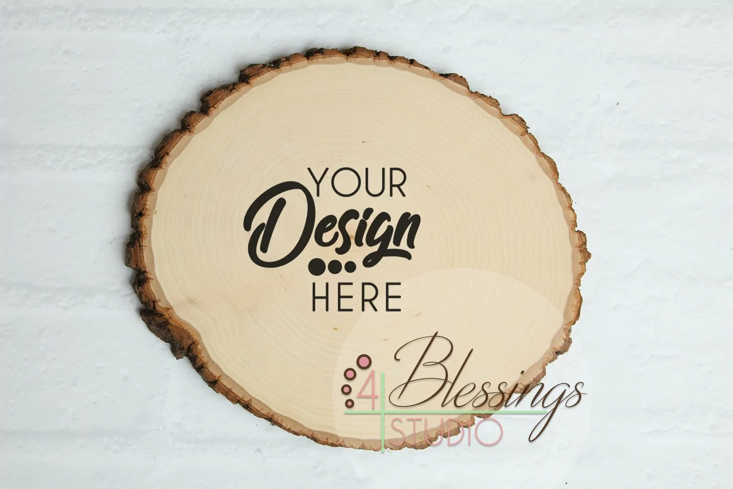 Round Wood Slice Sign with Bark Edges Mockup Template example image 1