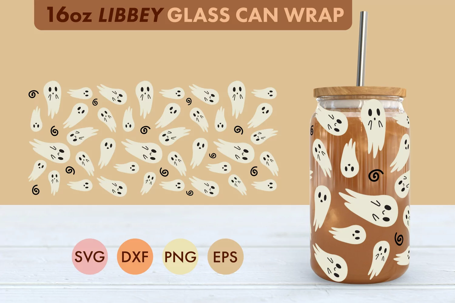 Ghost Halloween SVG PNG 16 oz Libbey Glass Can Wrap