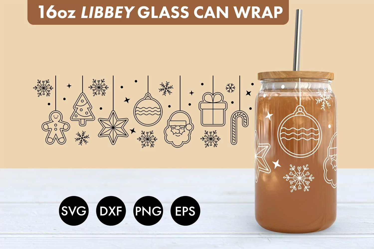 Christmas Baubles SVG Cut file and PNG is perfect to use as a stencil on 16 oz Libbey Glass Can Wrap