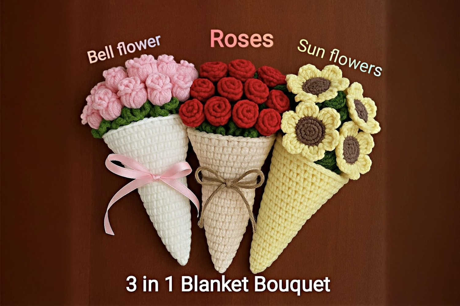 This bundle includes 3 unique crochet blanket patterns, each designed with elegant flower details that come together like a charming bouquet. Perfect for adding a cozy and artistic touch to your home or creating meaningful handmade gifts.