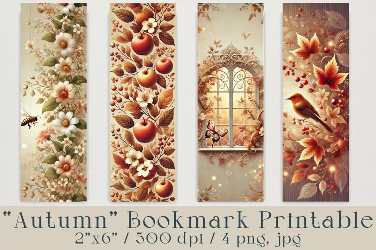 Autumn Printable Bookmarks, Delicate Gentle Fallen Images, Cute Fall Ideas design -4 png, jpg files.