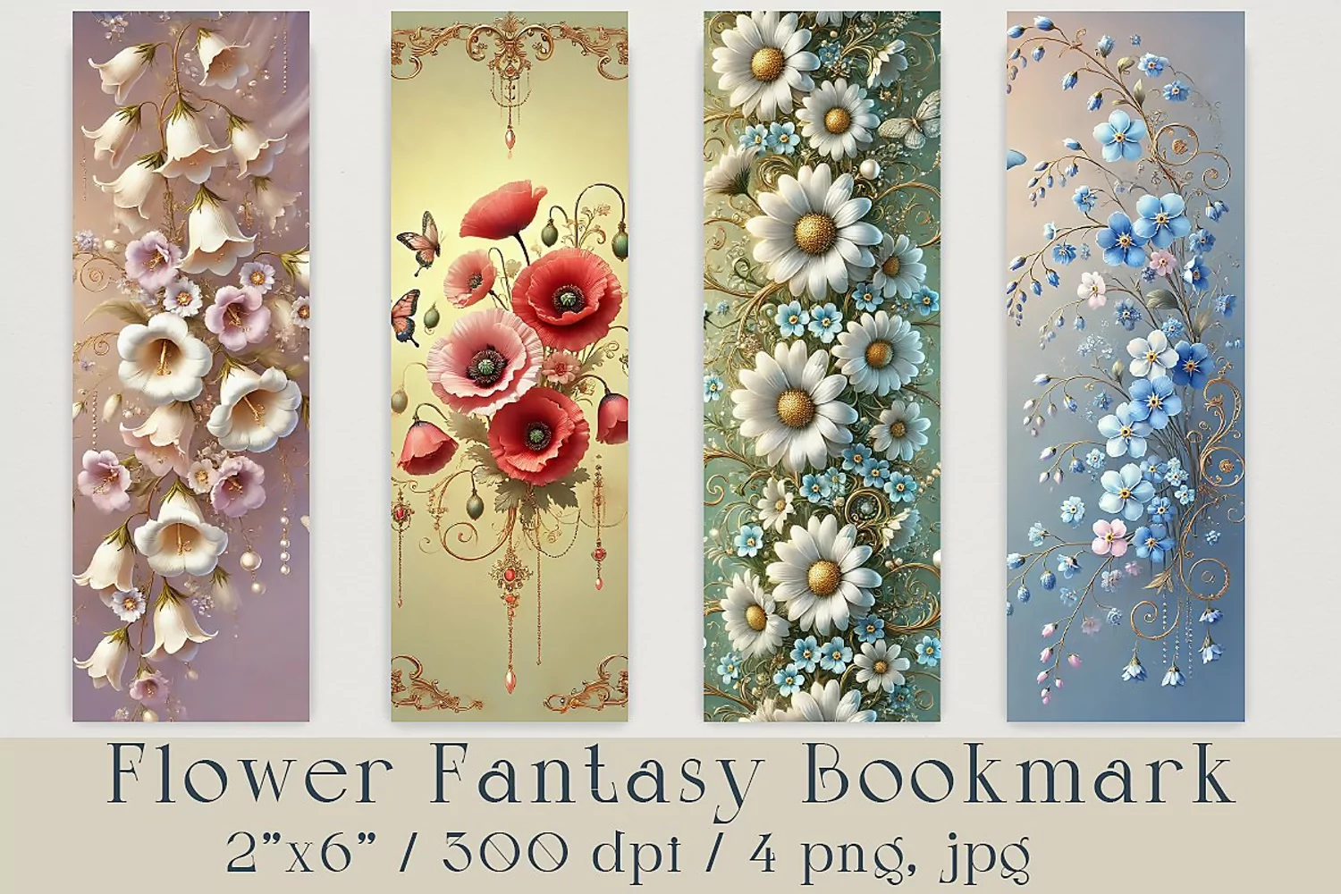 Flower Fantasy Bookmark, 4 png, jpg example image 1