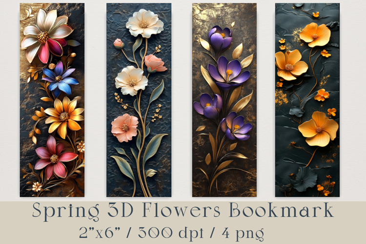 Spring 3D Flowers Bookmark, 4 png example image 1