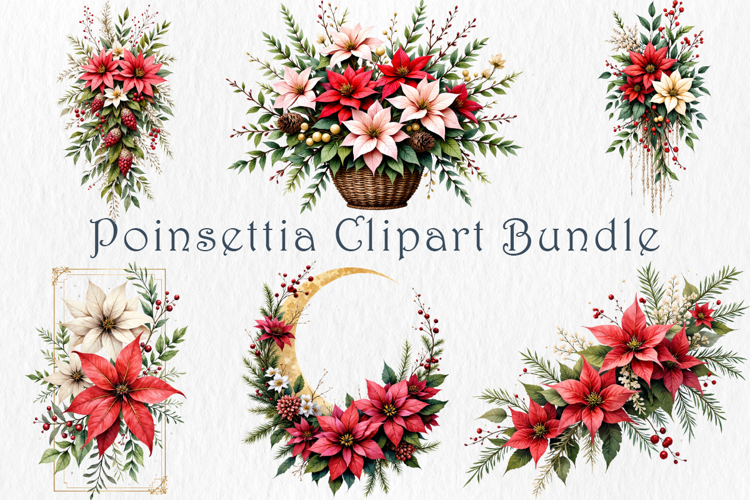 This Poinsettia Clipart Bundle includes 35 high-quality PNG elements featuring classic red poinsettias, winter greenery, Christmas bouquets, wreaths, borders, and floral arrangements. Perfect for holiday invitations, Christmas cards, winter parties, seasonal branding, sublimation, wall art, planners, and printable crafts. All files come in transparent PNG for easy layering and high-resolution designs.