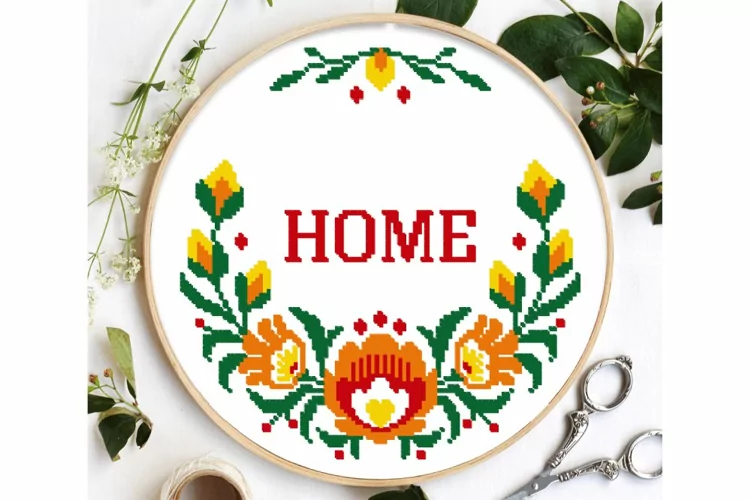 Cute Home Florl wreath cross stitch pattern PDF for digital download