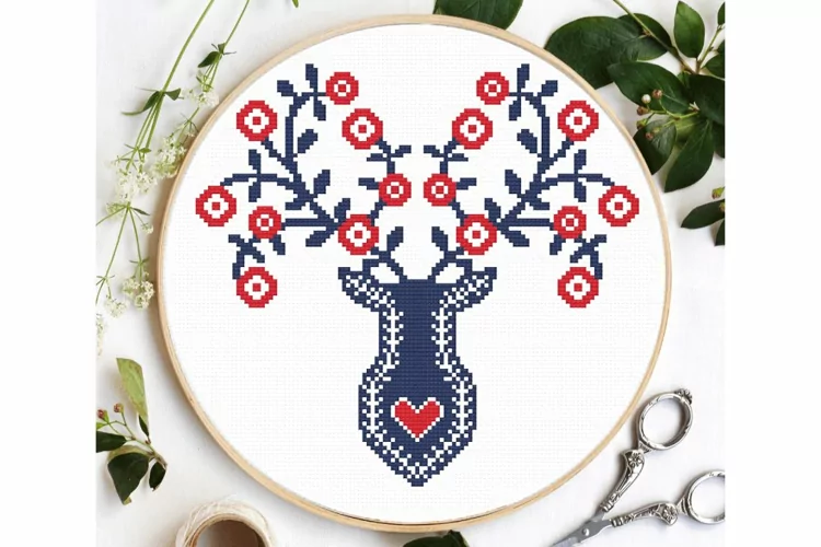 Christmas deer Cross stitch pattern PDF Scandinavian Easy