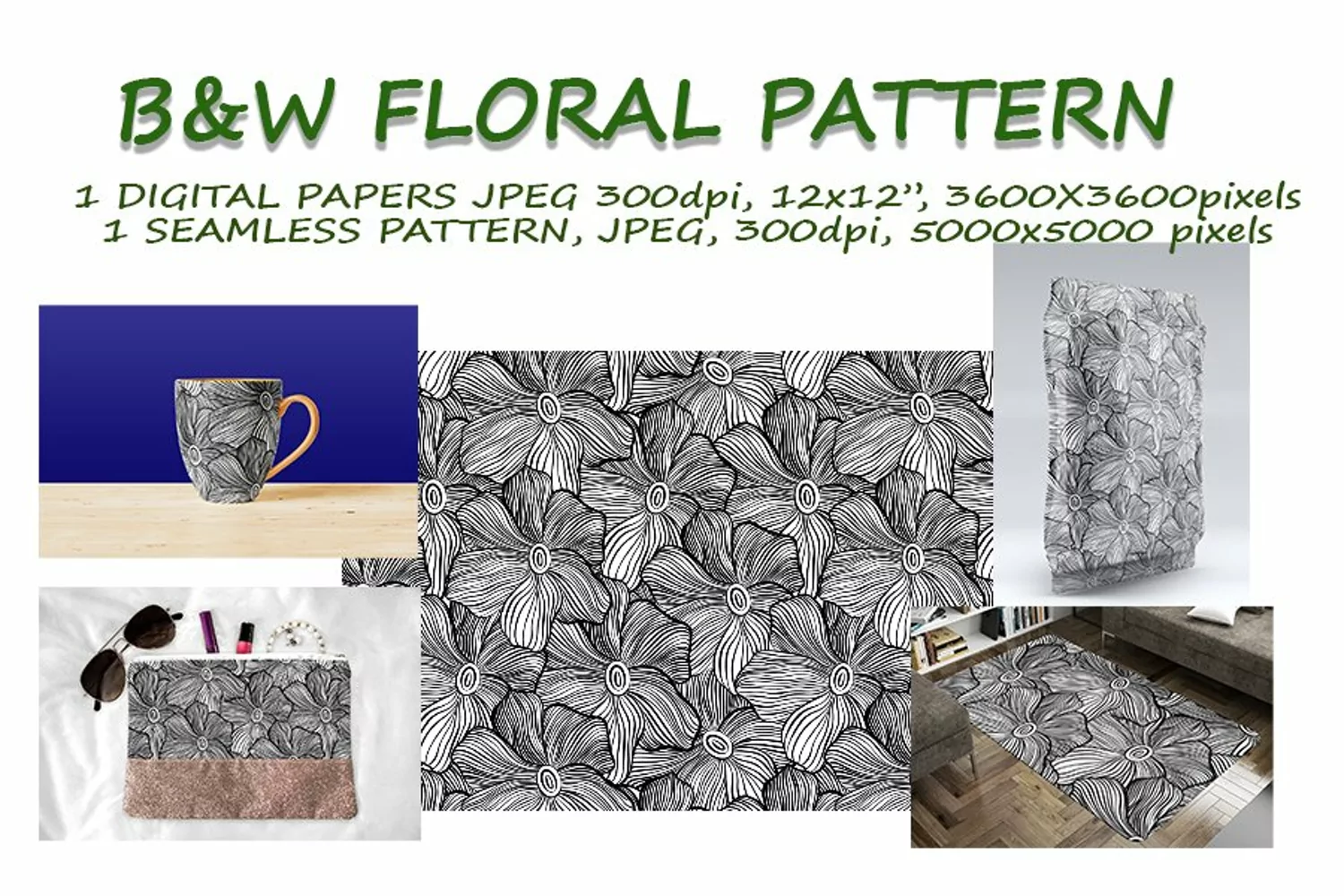 This is my black and white floral seamless pattern digital papers size