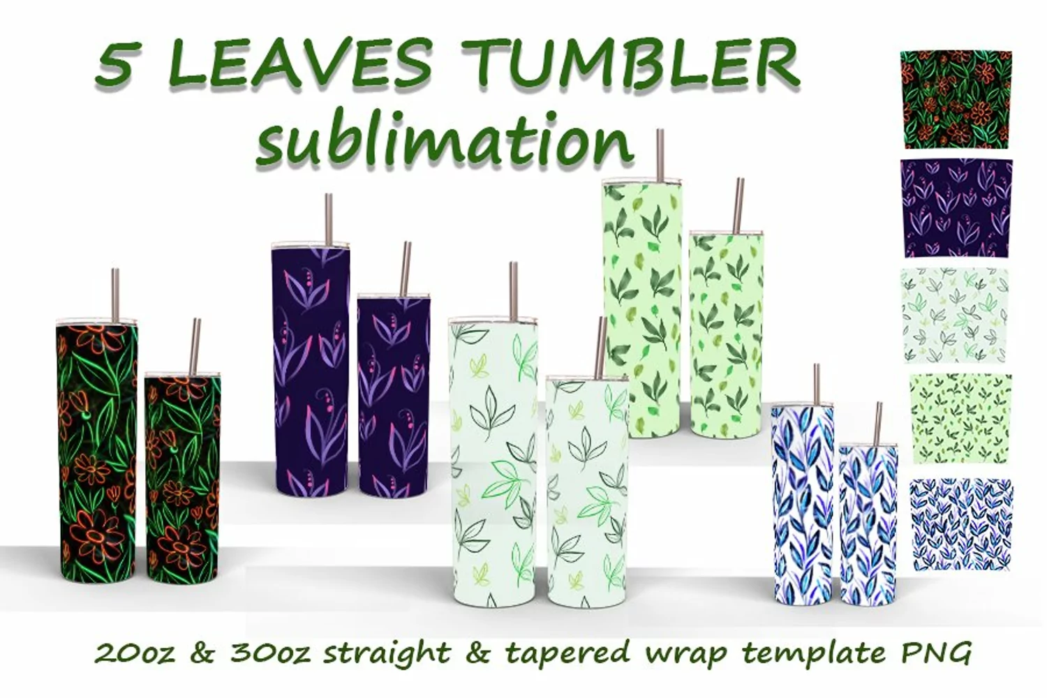 Here is 5 watercolor Leaves Sublimation designs for 2 most popular size tumblers: