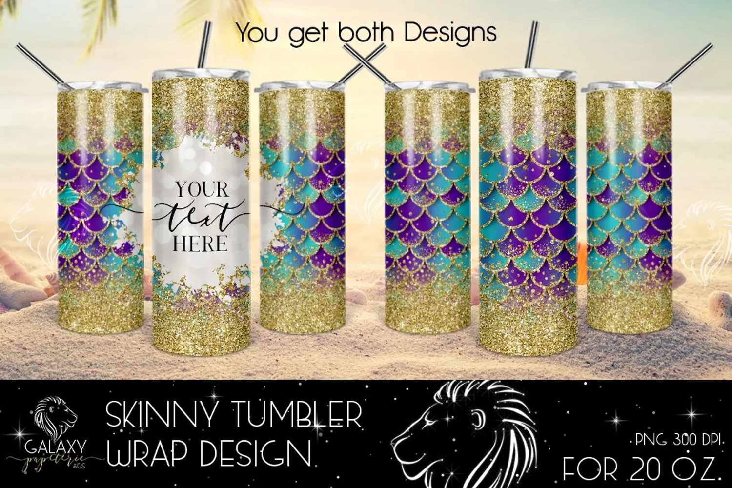 Mermaid Scales 20 Oz. Skinny Tumbler Wrap Sublimation Design example image 1