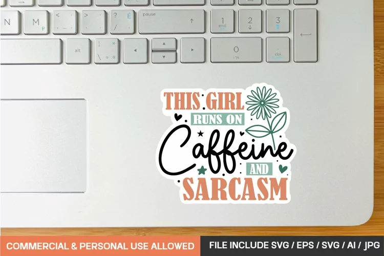 This Girl Runs On Caffeine And Sarcasm Sticker Design example image 1