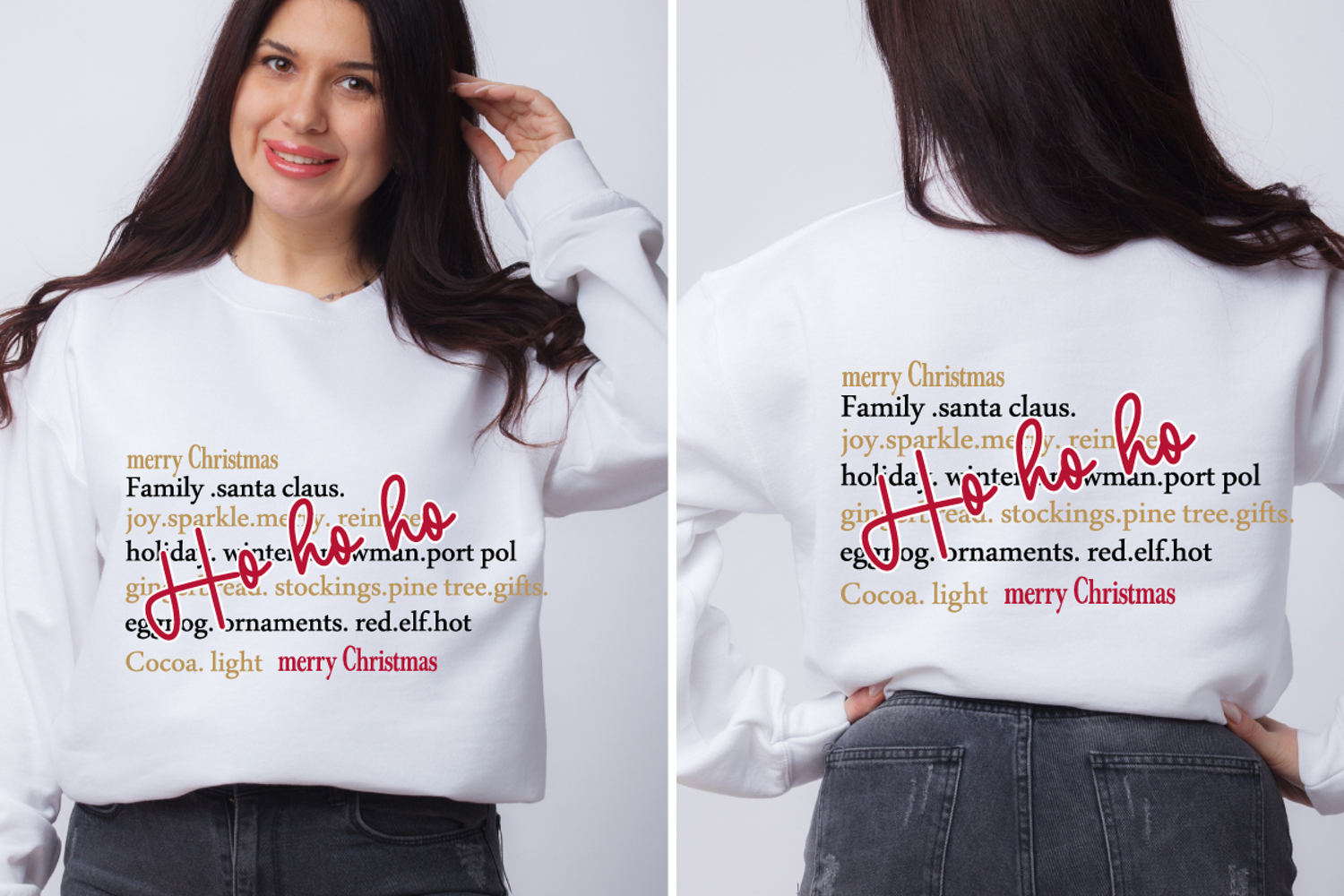 Ho Ho Ho Words SVG, Merry Christmas SVG, Christmas Sweater