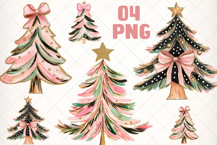 Similar Design Products to Hand Painted Coquette Christmas Tree PNG, Christmas Tree PNG