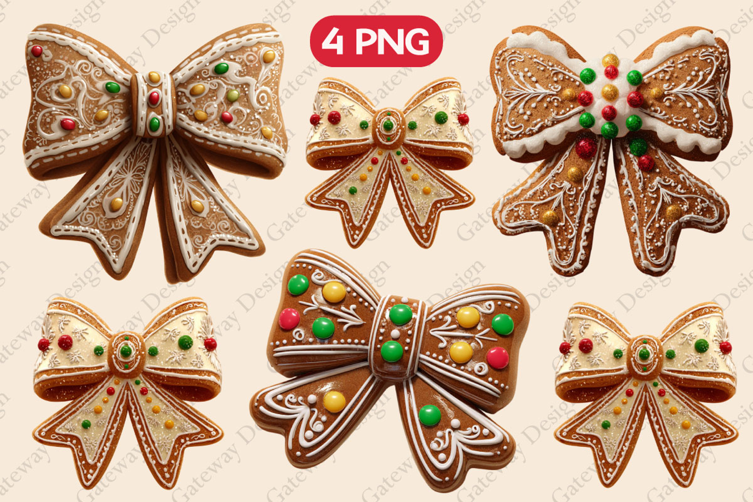 Gingerbread Coquette Bow Christmas PNG/4 Designs example image 1