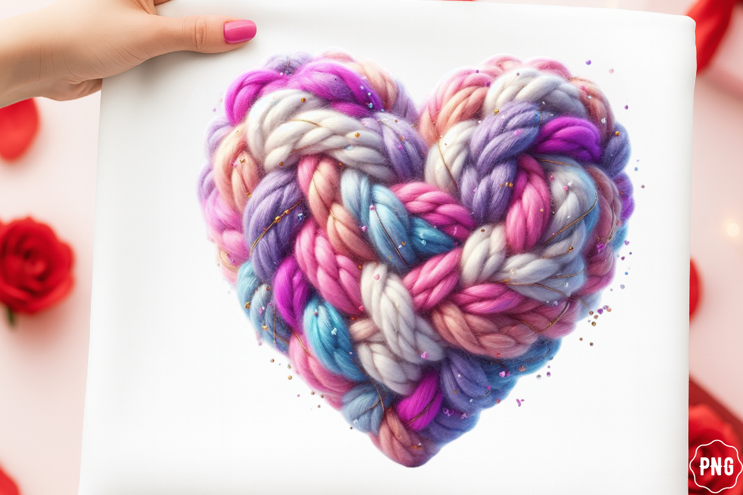 Glitter Crochet Yarn Valentine Heart Png example image 1