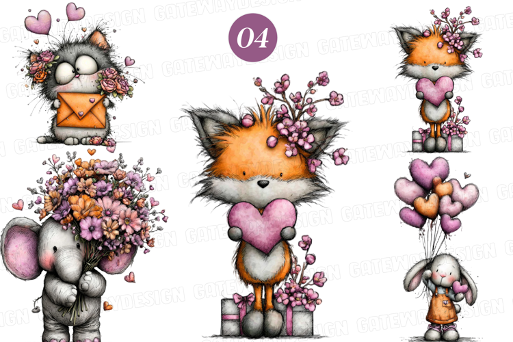 Whimsical Valentine Animals Clipart - Valentine Animals PNG example image 1