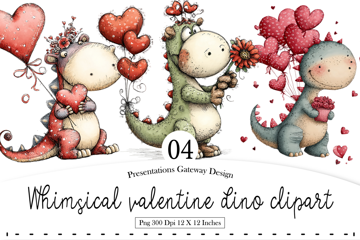 Similar Design Products to Whimsical Valentine Dino Clipart
