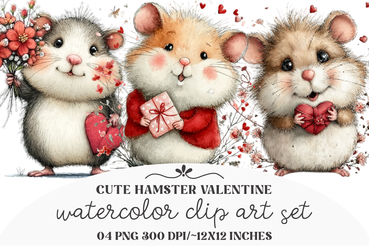 Whimsical Cute Hamster Valentine Clipart example image 1