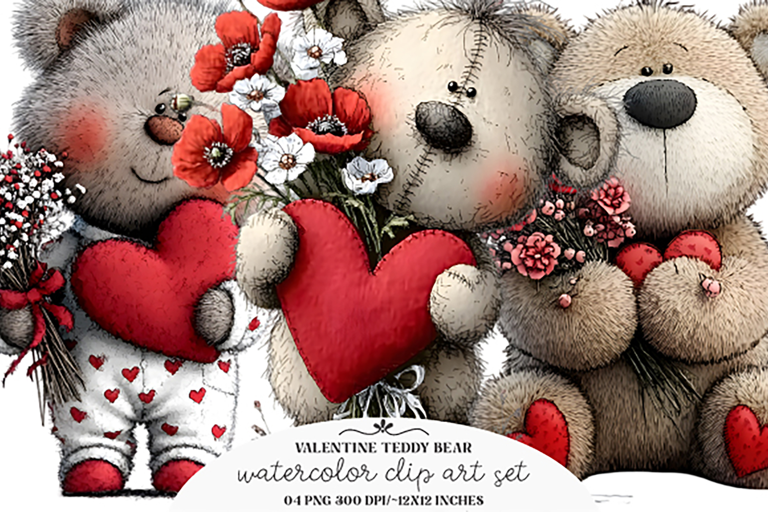 Similar Design Products to Whimsical Valentine Teddy Bear Clipart ,Valentine Teddy Png