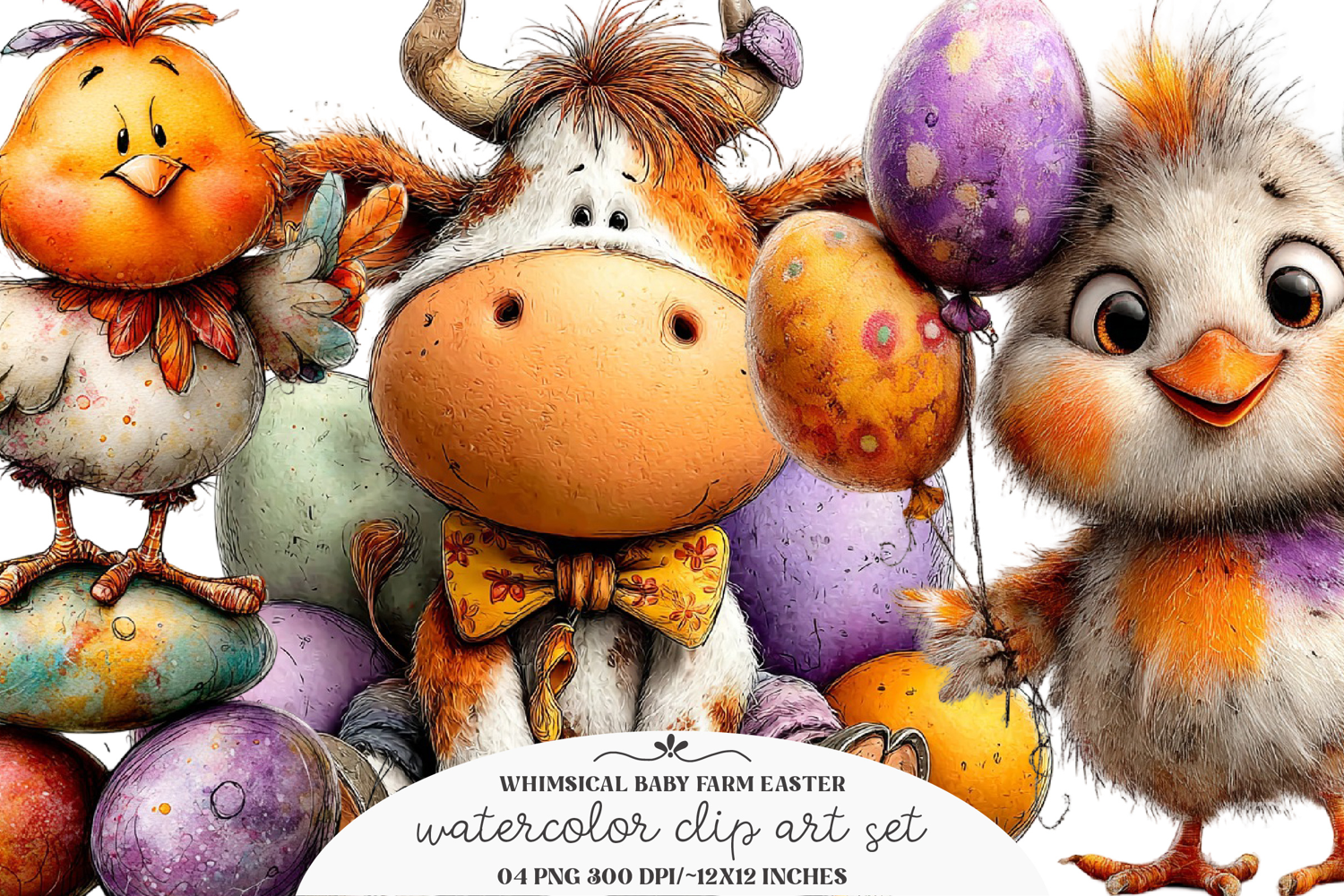 Whimsical Baby Farm Easter Clipart - Baby Farm Easter PNG example image 1